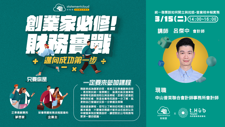 【財報雲 x t.Hub - 創業家必修財務實戰系列:統一發票該如何開立與扣抵 - 營業稅申報實務】