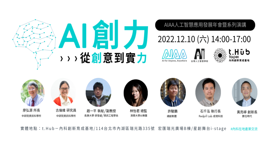 本次AI產業應用年會再度請來⟪最新的物件偵測王者YOLOv7⟫共同研發人廖弘源所長,為AIAA年會揭開演說序幕,廖所長以他專業易懂的演說風格,分享這款今年新問世的重量級物件偵測模型。聯合座談會則由數位時代創新長黃亮崢(James)以輕鬆與專業兼具的主持,針對【主題:AI創力】引導與談人們暢談AI科技如何帶動產業,化為精實、實質的影響力;最後由赴美、法研習、擅於醫學工程、NLP和跨領域學者專家們,將其國際視野帶回台灣,分享其在人工智慧所扮演關鍵角色,透過具體AI產業實務經驗,期許讓與會者收穫滿滿!