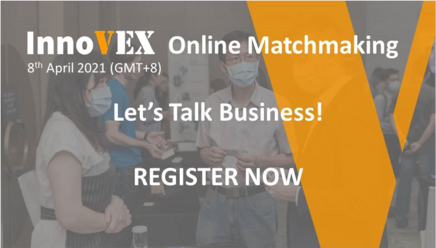 The InnoVEX Team at the Taipei Computer Association (TCA) will be hosting a one-on-one online matchmaking event for the InnoVEX startups on 8th April 2021 (GMT+8).
