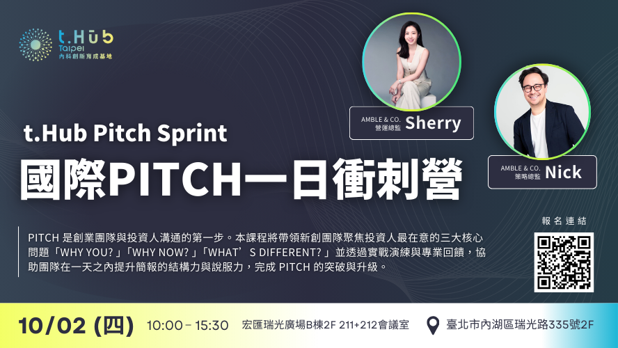 2025.10.02 (四) t.Hub Pitch Sprint|國際Pitch一日衝刺營 — 速學×實戰×回饋