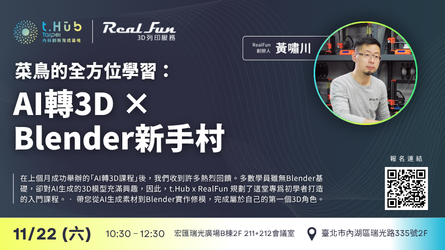 2025.11.22 AI轉3D × Blender新手村:菜鳥的全方位學習(限時免費課程)