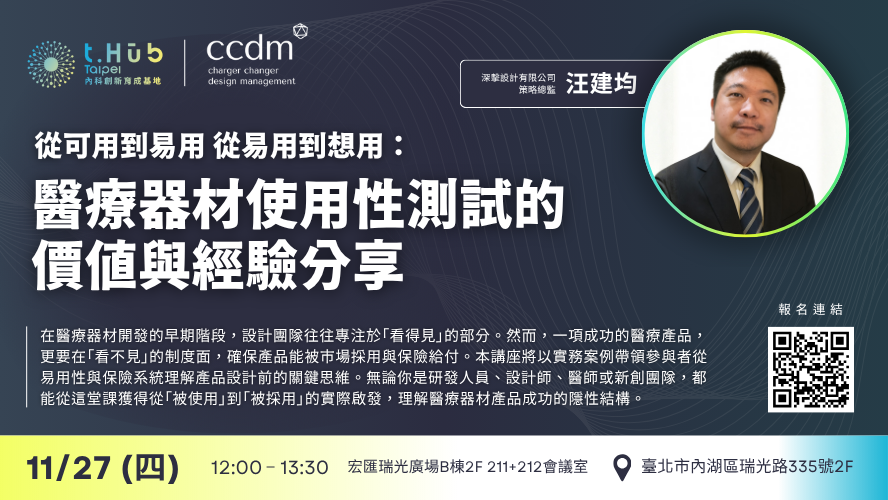 2025.11.27 從可用到易用 從易用到想用:醫療器材使用性測試的價值與經驗分享
