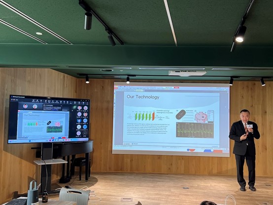 奇翼醫電 李維中(David Lee) 執行長在 PoC Pitch 中詳細說明創新技術之特徵及優勢,並與 Daicel 研發、業務及技術專家們進行深度交流,展示其核心技術:獨家非接觸式人體生理資訊感測技術。奇翼醫電專注於結合 AI 影像辨識與先進感測技術,開發出可精準、即時監測人體血糖、心跳等生理數據的產品。這項創新與 Daicel 在智慧醫療技術(Smart Medtech)和非接觸式感測人體生理資訊(Non-invasive vital sensing) 的徵案領域高度契合。